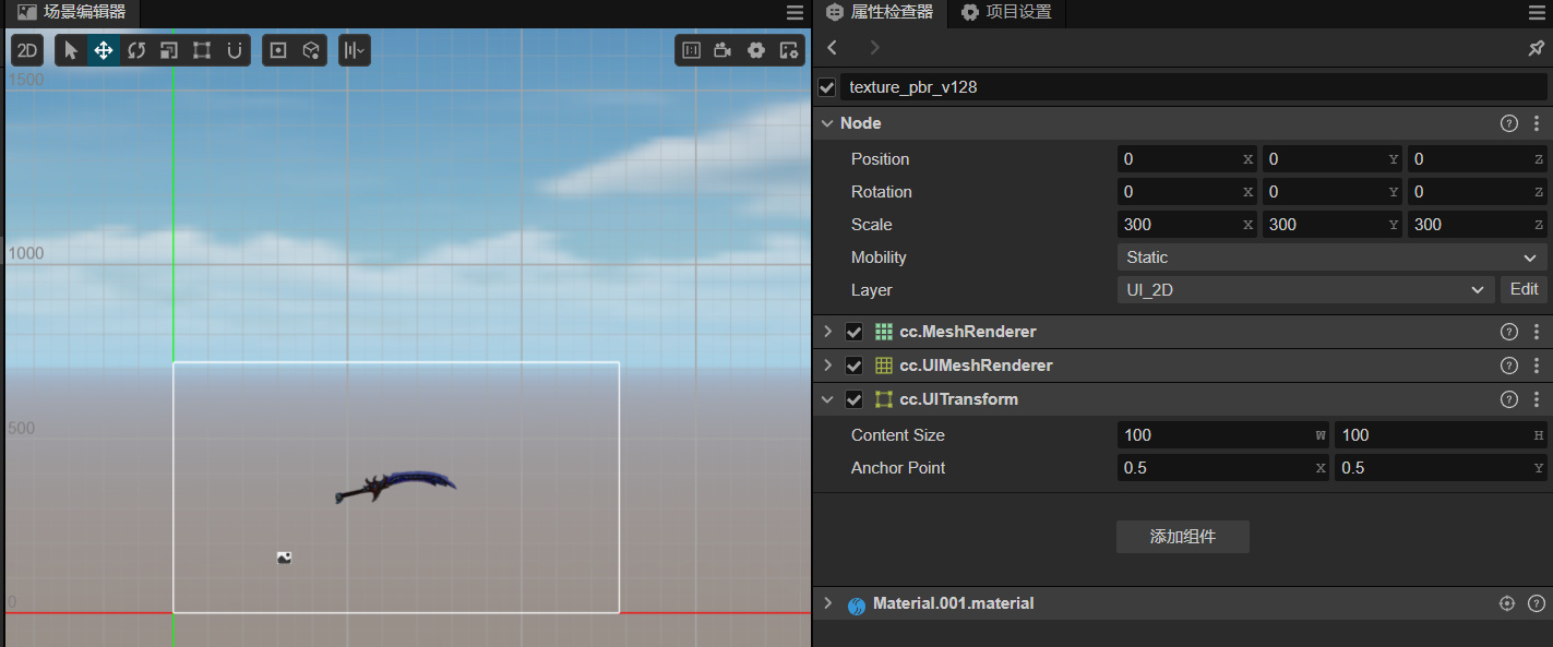 你可以把它加到你的模型mesh节点上,这样你的模型就是2D得可以直接用UI得坐标来渲染3D