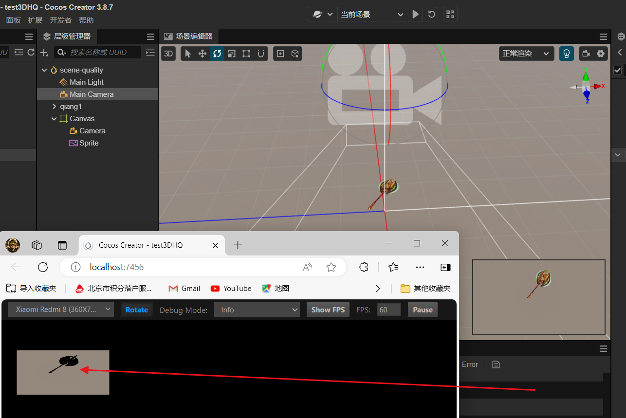 摄像机下,模型怎么样,那个rt就是咋样的了,你可以旋转原来的模型