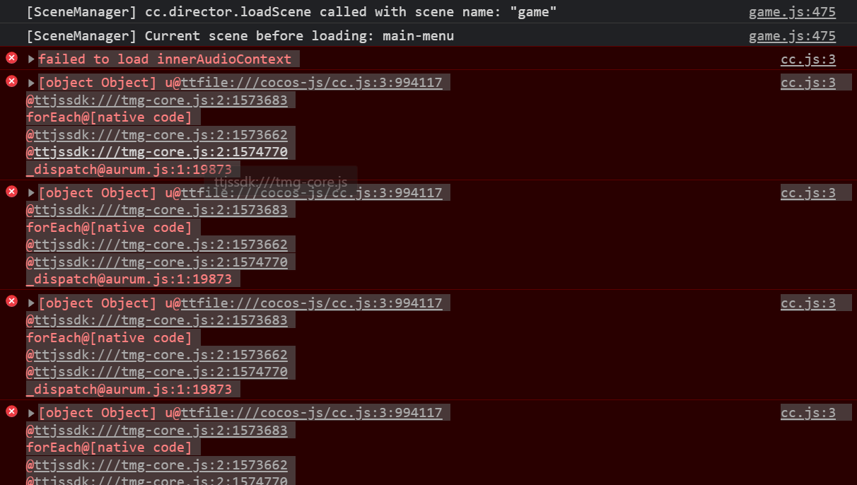 。抖音小游戏在 iOS 无法启动游戏,安卓鸿蒙都没问题,。。修改了场景切换,禁用音频都没用,延迟加载也没用。