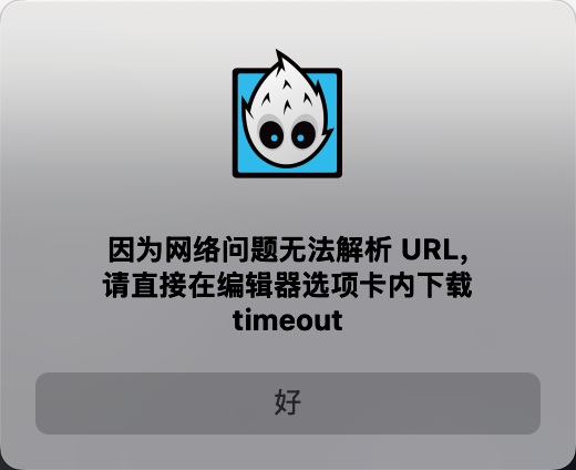 无法现在creator 编辑器,我下的是3.8.2提示超时