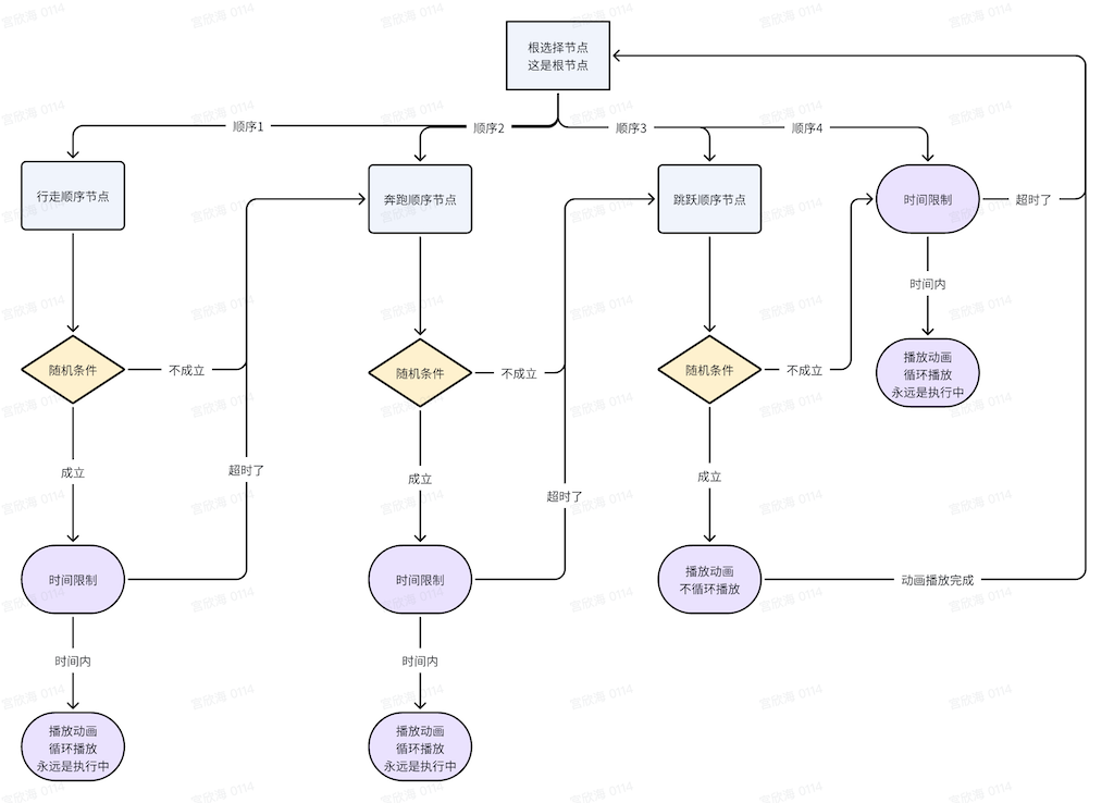 行为树就像一颗跳动的心脏,每一帧(通常是1/60秒)都会从根节点开始"心跳"一次: