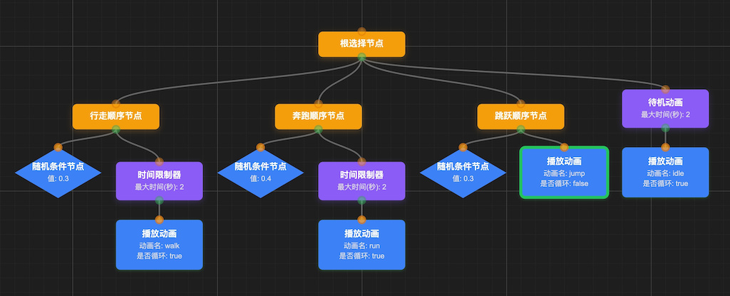 这就是行为树的魅力:每一帧都在重新评估,动态调整策略,就像一个真正在思考的智能体!