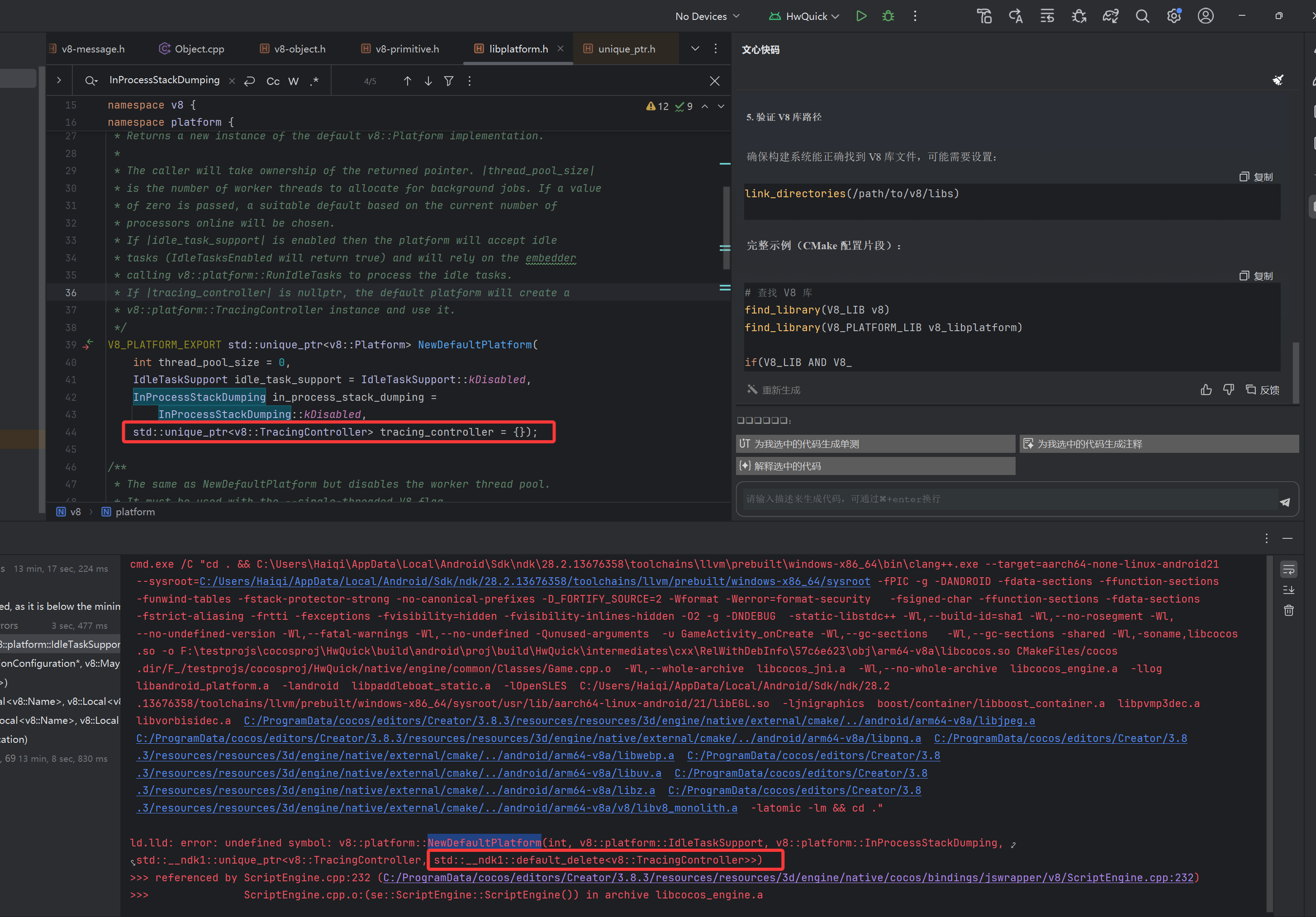 看样子是 v8 报错,用 3.8.8 的v8 库试试