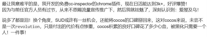 之前确实有考虑不周,让 TGX 用户久等了。 再次深表欠意,未来的路还很长,我会继续深耕下去,也会继续在 Cocos 生态活跃。