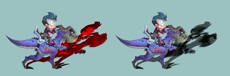 1. 多pass,一个绘制阴影,一个还是绘制原本spine。阴影绘制,顶点进行相应偏移。要像影子,让离脚部位置越高偏移越大。关键代码: