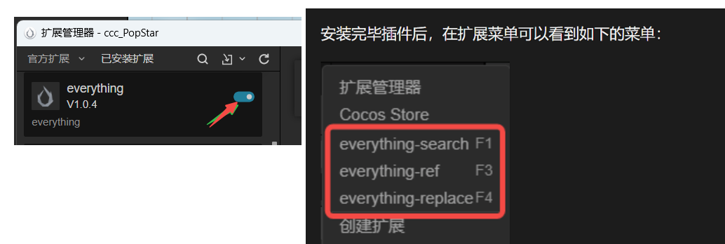 需要在扩展里面启用下插件,就能看到菜单了,默认插件安装后,就是启用状态,不清楚为啥你这个项目没有启用