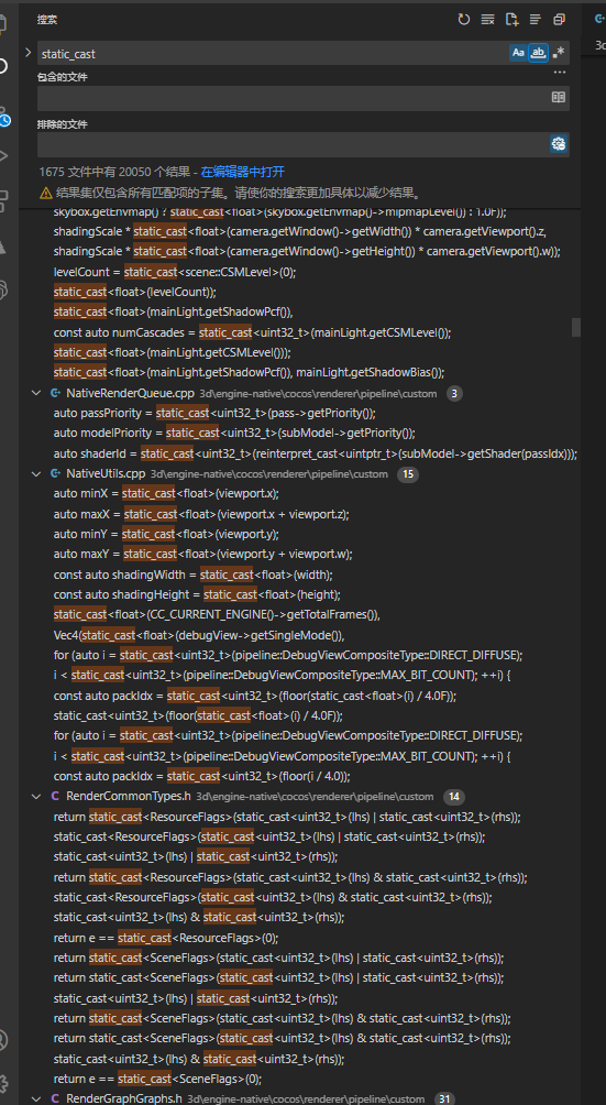 哥们 static_cast 改 reinterpret_cast 是当前版本的引擎下的?我(C:\ProgramData\cocos\editors\Creator\3.7.4\resources\resources\3d\engine 这个路径下)搜索起来2w多个涵盖了.h .cpp .hpp .mm等类型文件