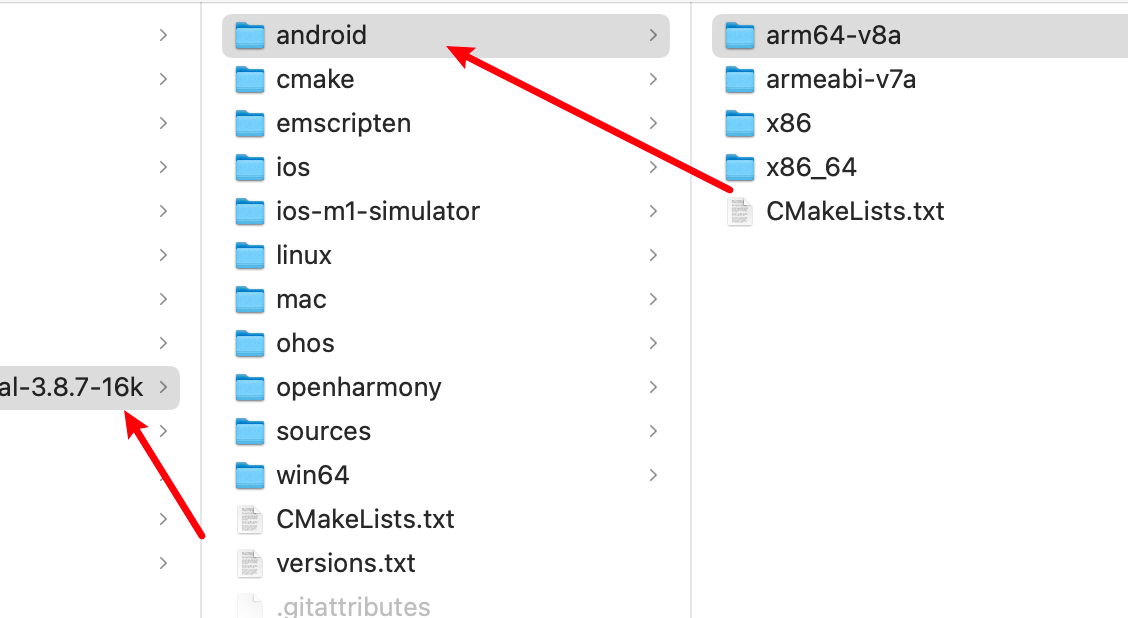 将压缩包内的andoroid目录整体替换进引擎的android目录。(Resources/resources/3d/engine/native/external/android)