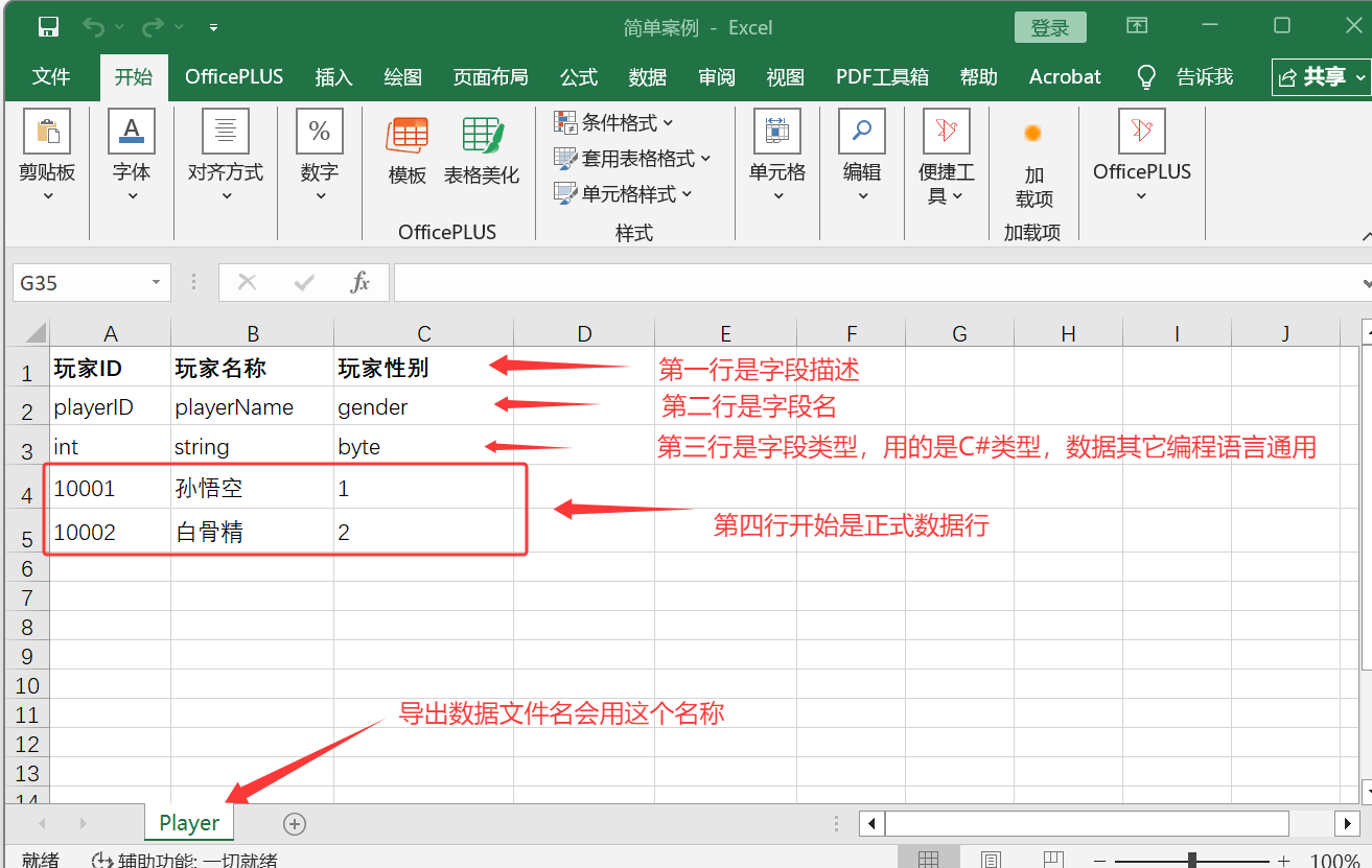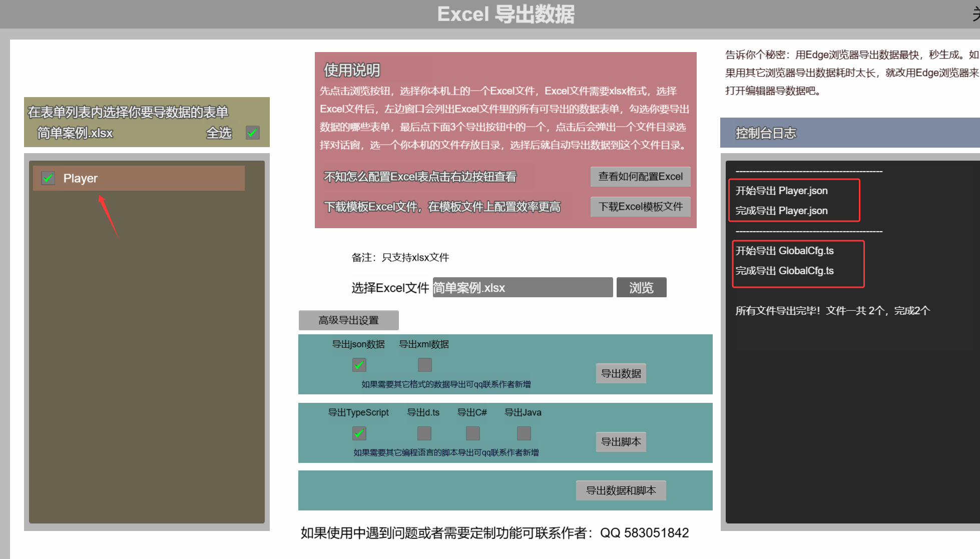 导出时会以表单名做为文件名导出,比如上面截图的表单名为Player,所以导出的数据和脚本都命名为Player。如下图: