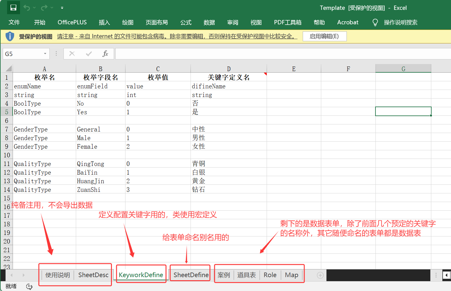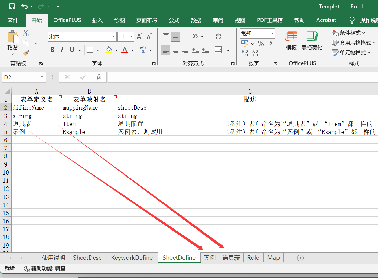 1、“使用说明”,“SheetDesc”,这两个名称是纯备注和描述用的,随便写,不会被导出。