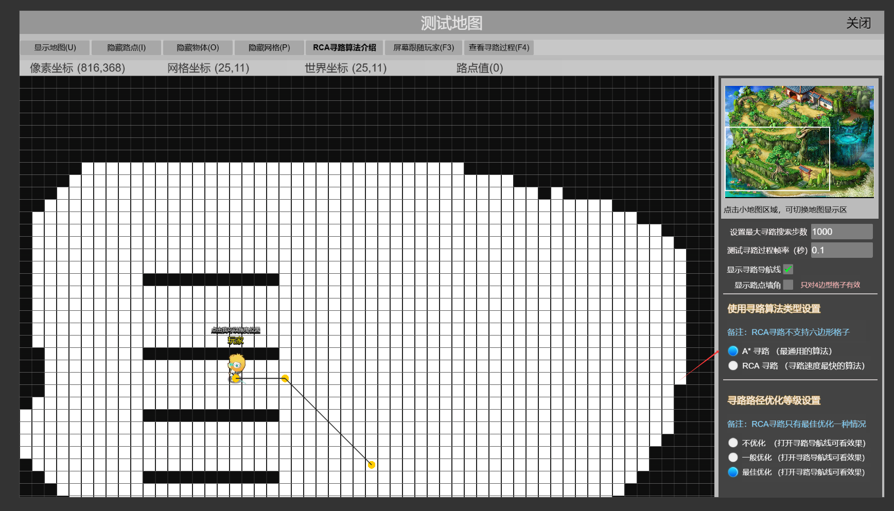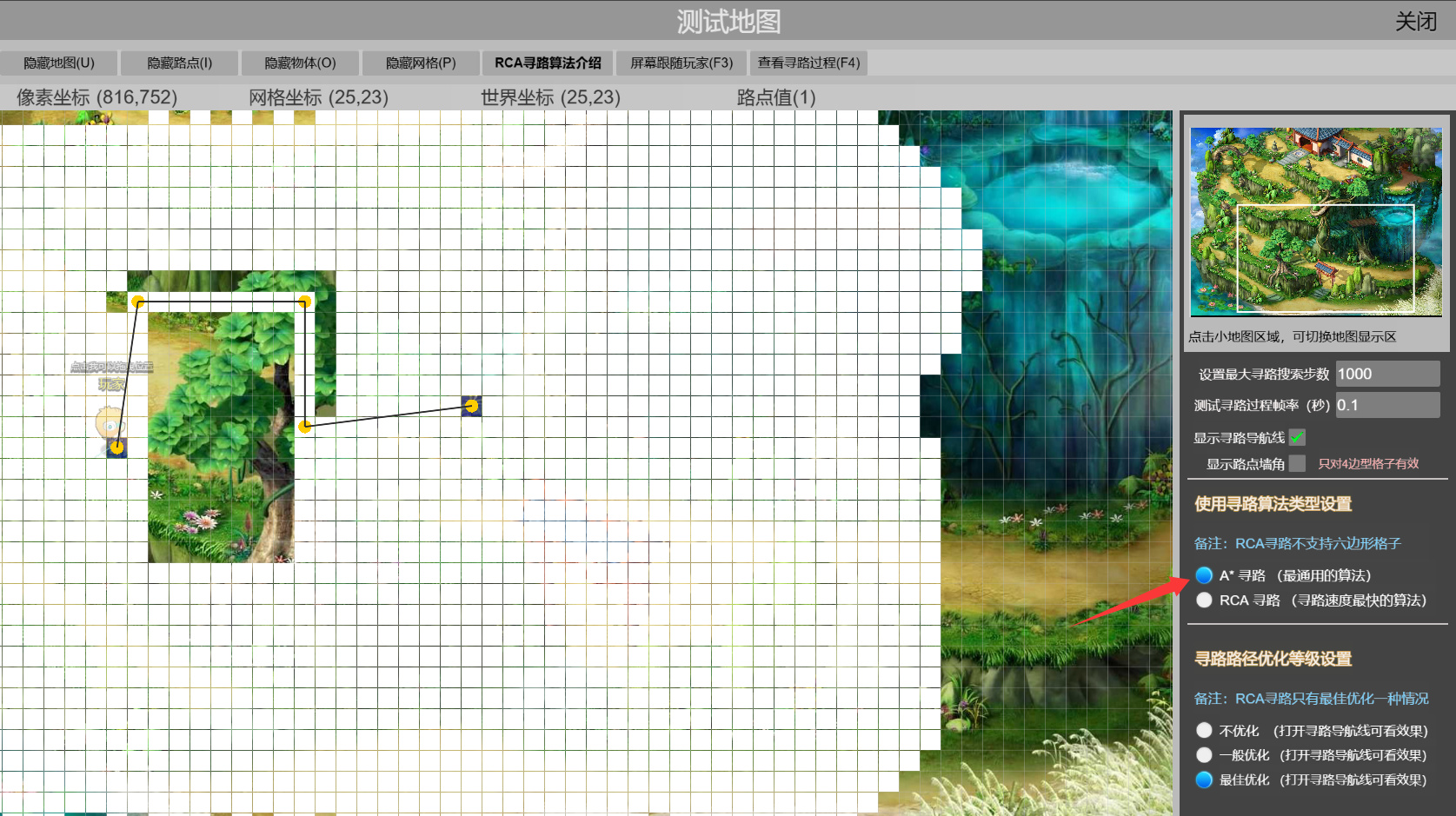 A星的路径总距离是27.1。RCA寻路的路径总距离是26.2,明显是RCA距离更短。而且我测过很多次,有很多相同起始点和终点路径不一样的情况,两种寻路算法的路径差距基本保持在2的误差以内。而且大部分是RCA寻路的路径更短。而且上面那个SmallMain的用户不是说了吗?两个寻路的策略不一样,有一些情况是路径不一样。你怎么像航海大发现一样似乎发现新大-陆,结果小丑是自己。