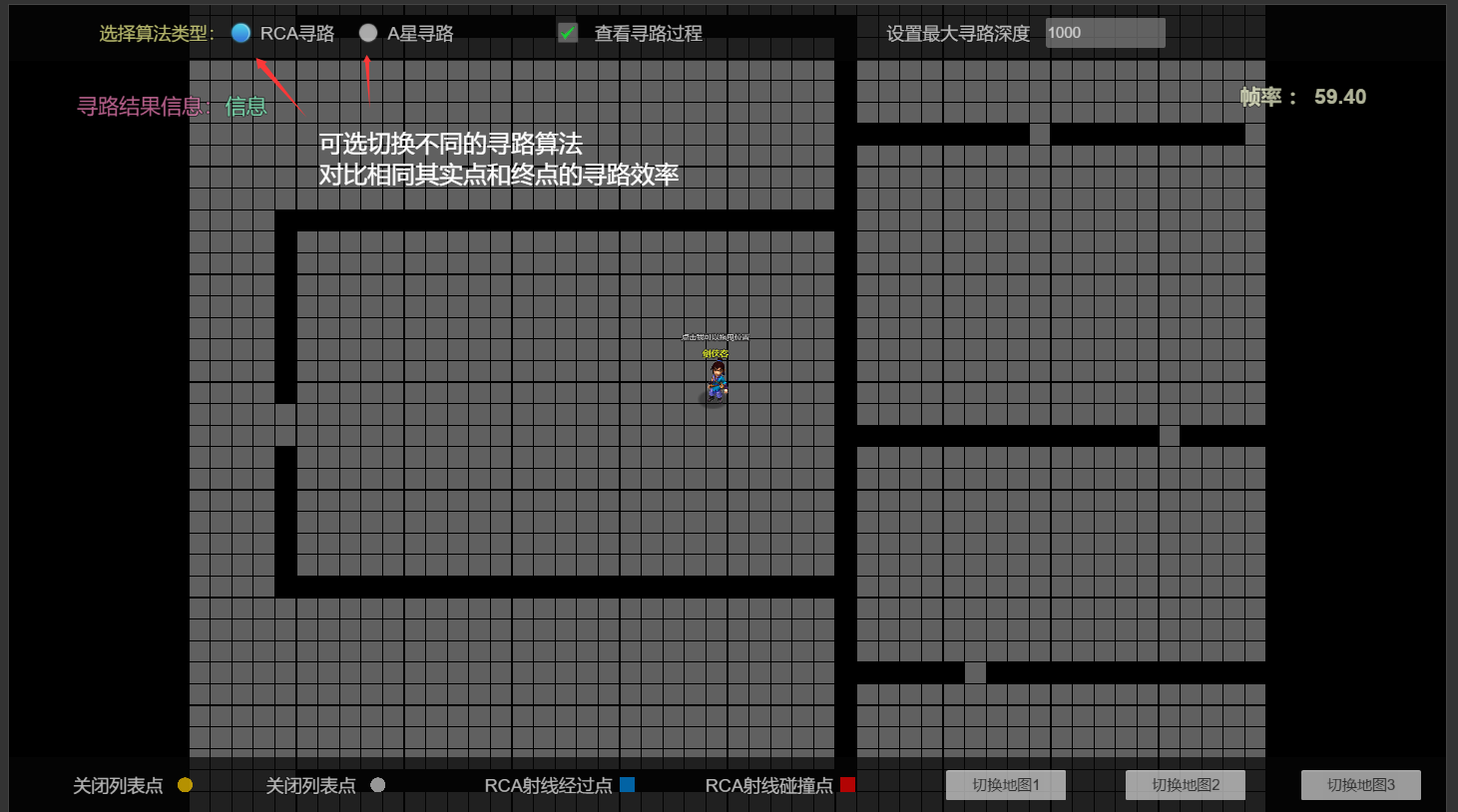 算了,你不爱看文字我就单独再做个测试案例直接给个你吧。里面包含了“RCA寻路”和“A星寻路”,你直接对比一下效率差距有多大。