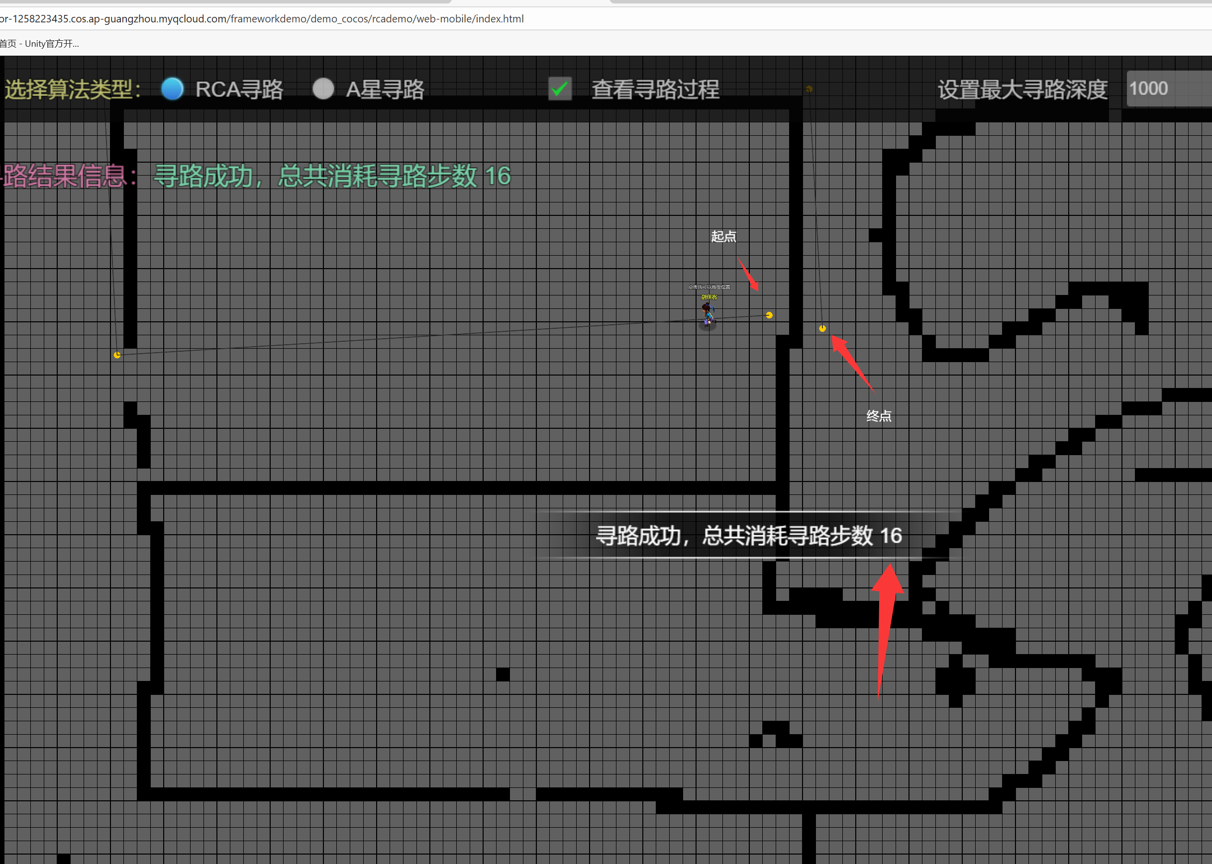 我的寻路案例都以动画演示的方式展示给你了,遇到死胡同可以轻易逃脱,其它复杂的地形也能随心所欲。