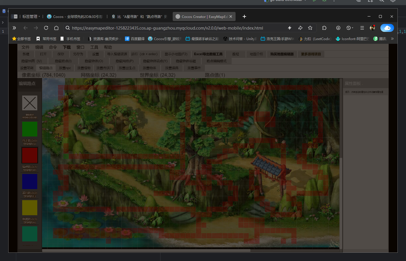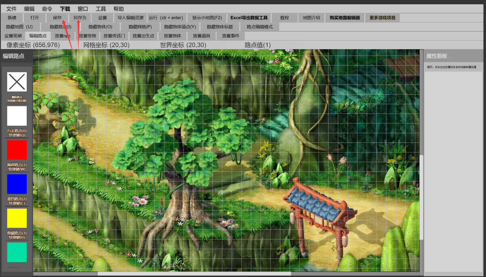 地图编辑器地址,点击打开,随便编辑些绿色可走的地形数据,没有编辑的默认不可走。