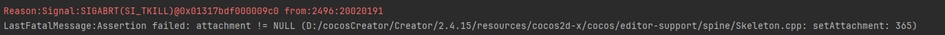 sp.Skeleton.setAttachment(“slotName”, null);设置spine骨骼为不显示,在华为鸿蒙打包之后会引起闪退,大家有没有好的解决办法?或者是不是setAttachment第二个参数不能填null?