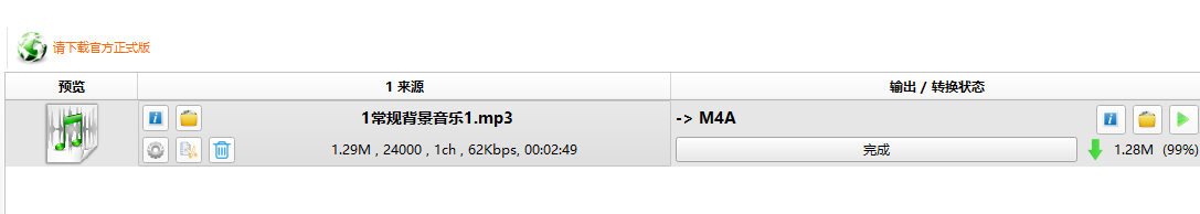 我1.5M的mp3格式的音乐,通过格式工厂转成m4a文件,结果大小变成了9M多,包体直接超了