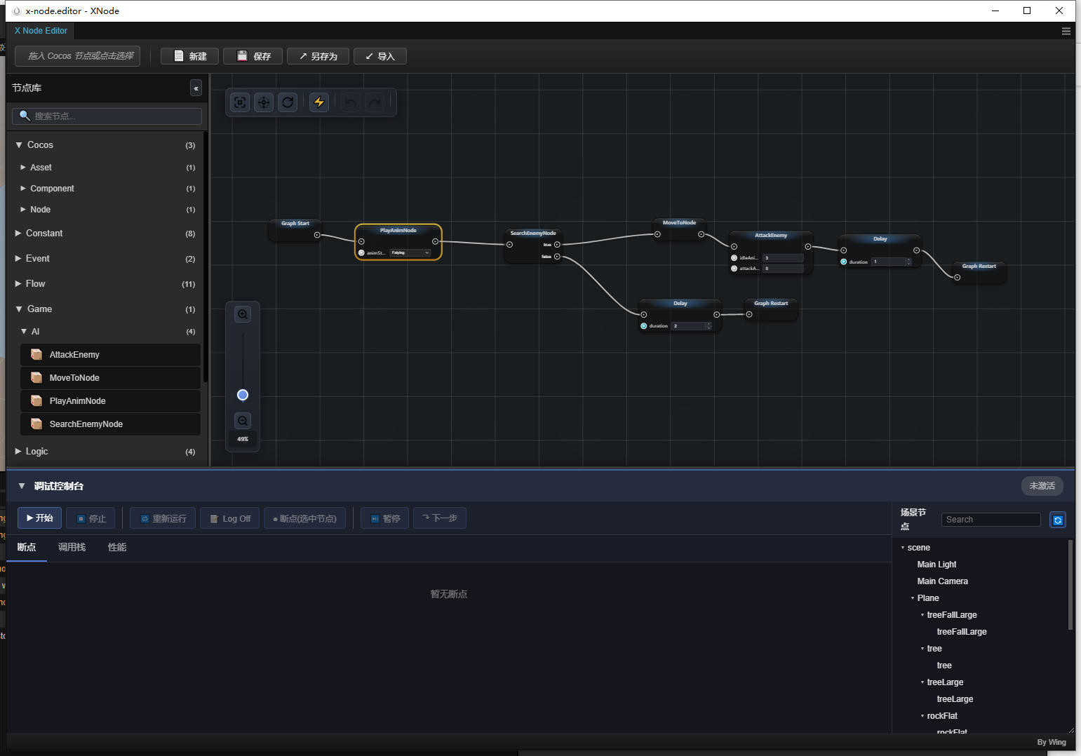XNode:面向 Cocos Creator 的可视化行为图与调试插件,用拖拽节点的方式快速搭建 AI 和游戏流程,并提供运行时高亮与断点调试,一站式提升开发效率。