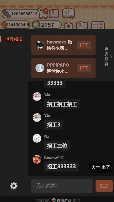 除了好友之间的互动,还有完全陌生玩家之间的互动,陌生人接触在微信生态中是非常谨慎的。在自助餐厅场景的打工互动模式里,玩家可以在微信官方的交流平台“游戏圈”中进行邀请或者接受他人邀请,这里的玩家之间都是完全陌生的。