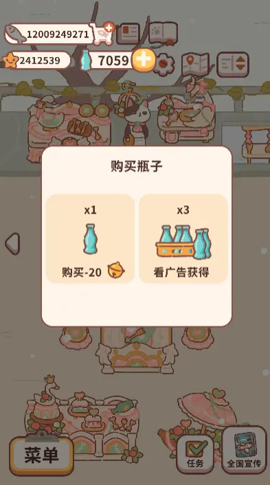 瓶子需要外卖产出的铃铛购买而不能直接通过小鱼干换得