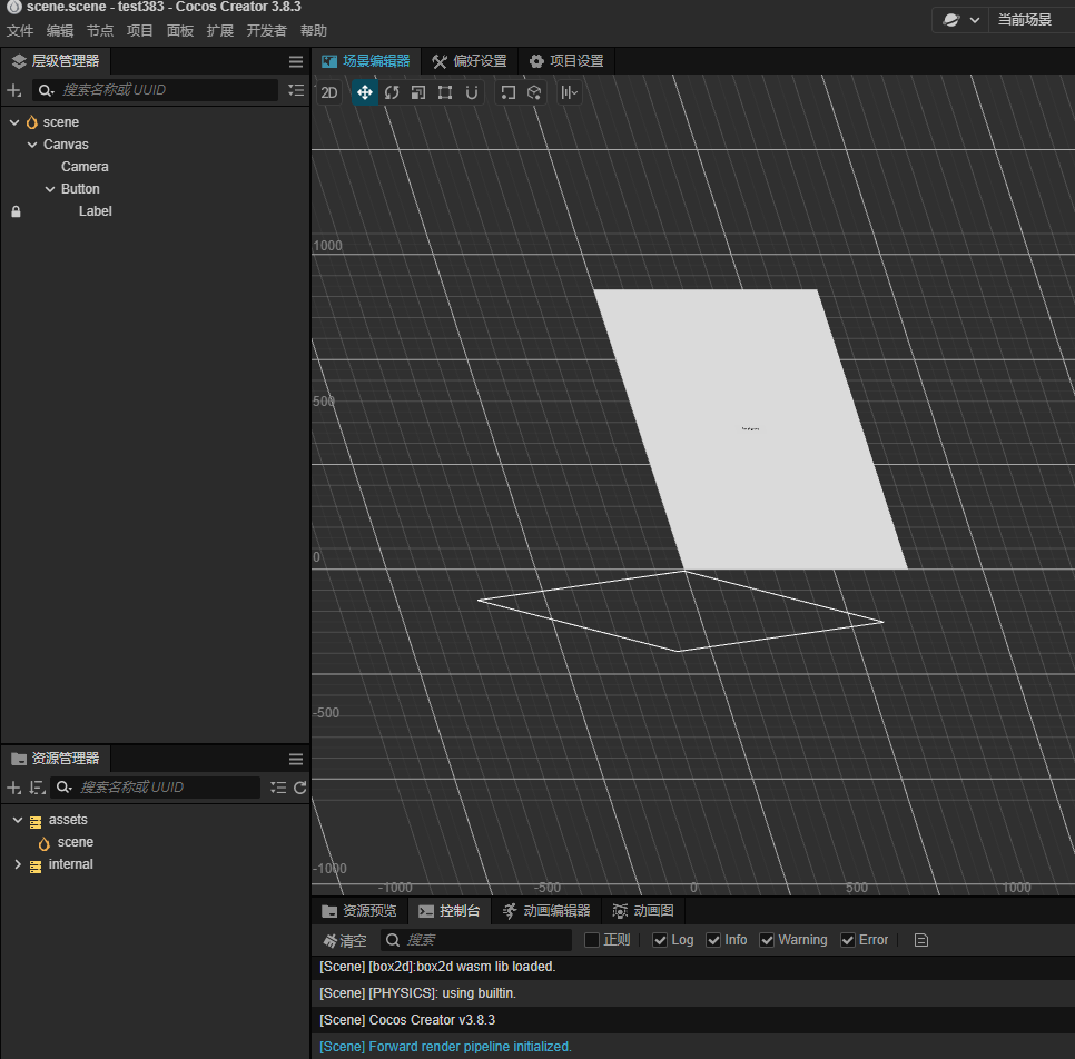 清除所有节点,然后再创建一个按钮(会添加canvas和camera),按按钮绑定weiget保持屏幕一样大。