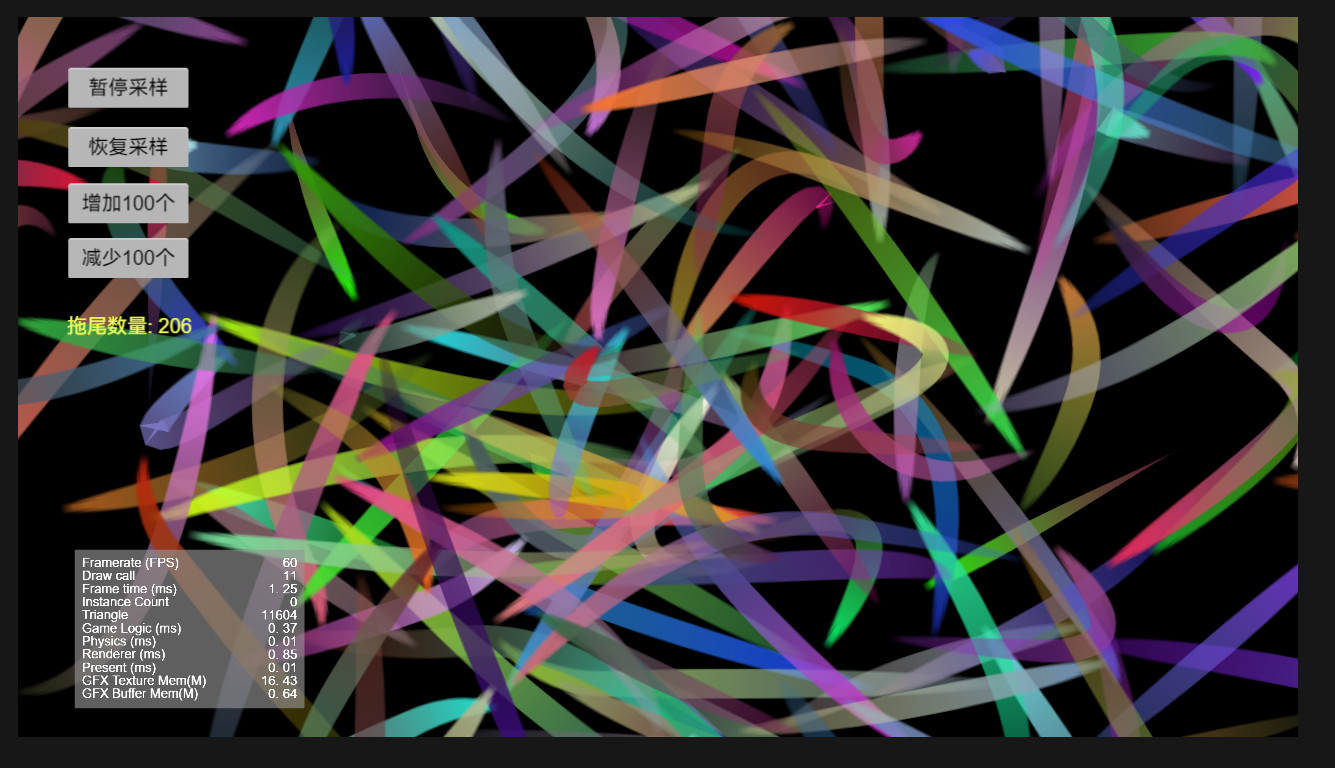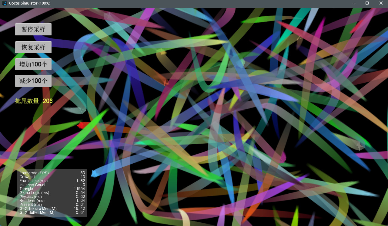 正好我之前的一些渲染组件PolygonSprite有些都是通过自定义assembler实现的,所以也实现了一个拖尾.