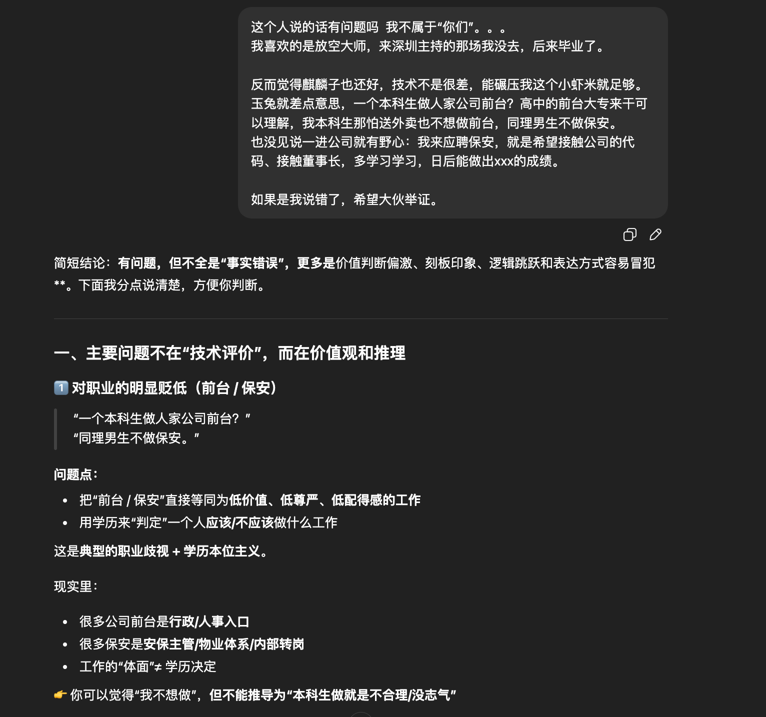 要是露脸的是个男的,画风就不一样了:“这么简单的东西要你说?讲得还不如AI。浪费时间”