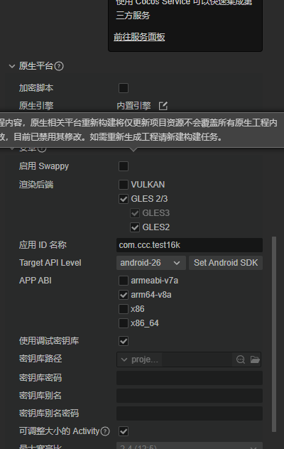 编译项目,这里我少选了abi,不过不影响,后面studio中添加就可以了,target选择26或者其他版本都可以