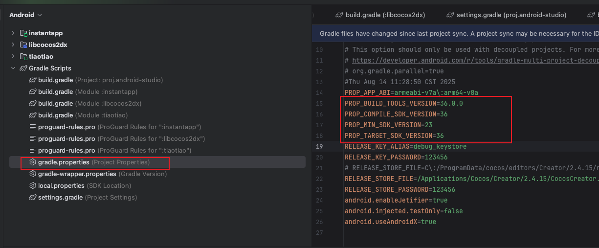 1、修改ccc.proj/build/jsb-link/frameworks/runtime-src/proj.android-studio/gradle.properties中的内容。