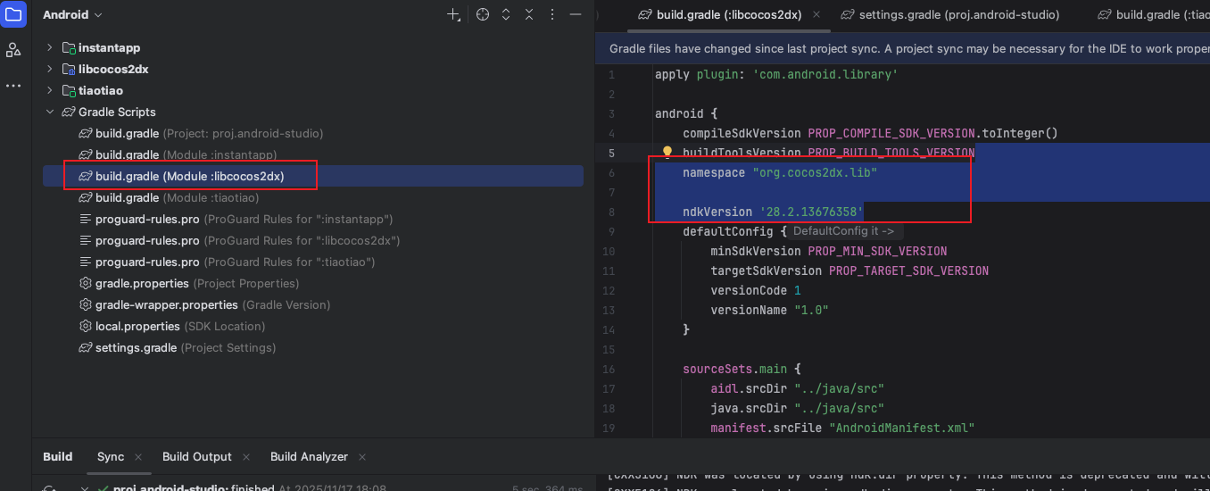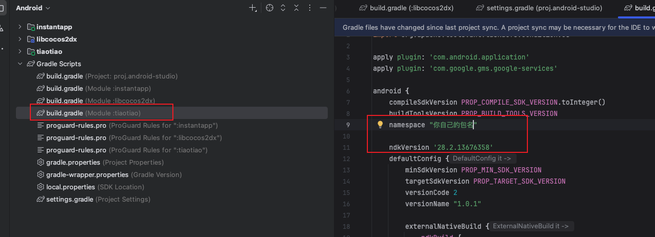 2、修改ccc.proj/build/jsb-link/frameworks/runtime-src/proj.android-studio/app/build.gradle中的内容。