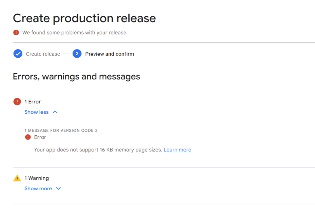 aab构建出来后提审到后台又遇到了下面这个问题,提示我的包不支持16kb