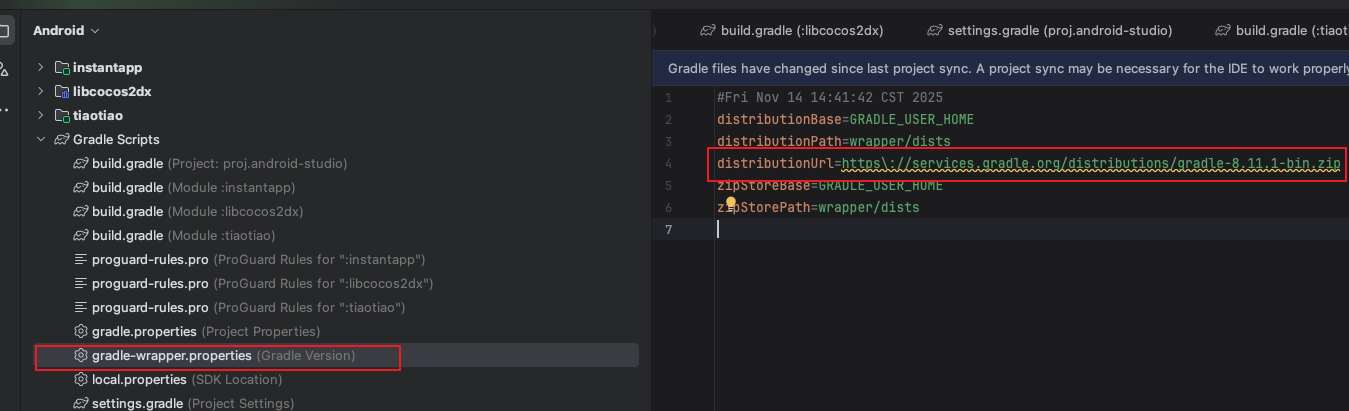2、修改ccc.proj/build/jsb-link/frameworks/runtime-src/proj.android-studio/gradle/wrapper/gradle-wrapper.properties中distributionUrl版本。