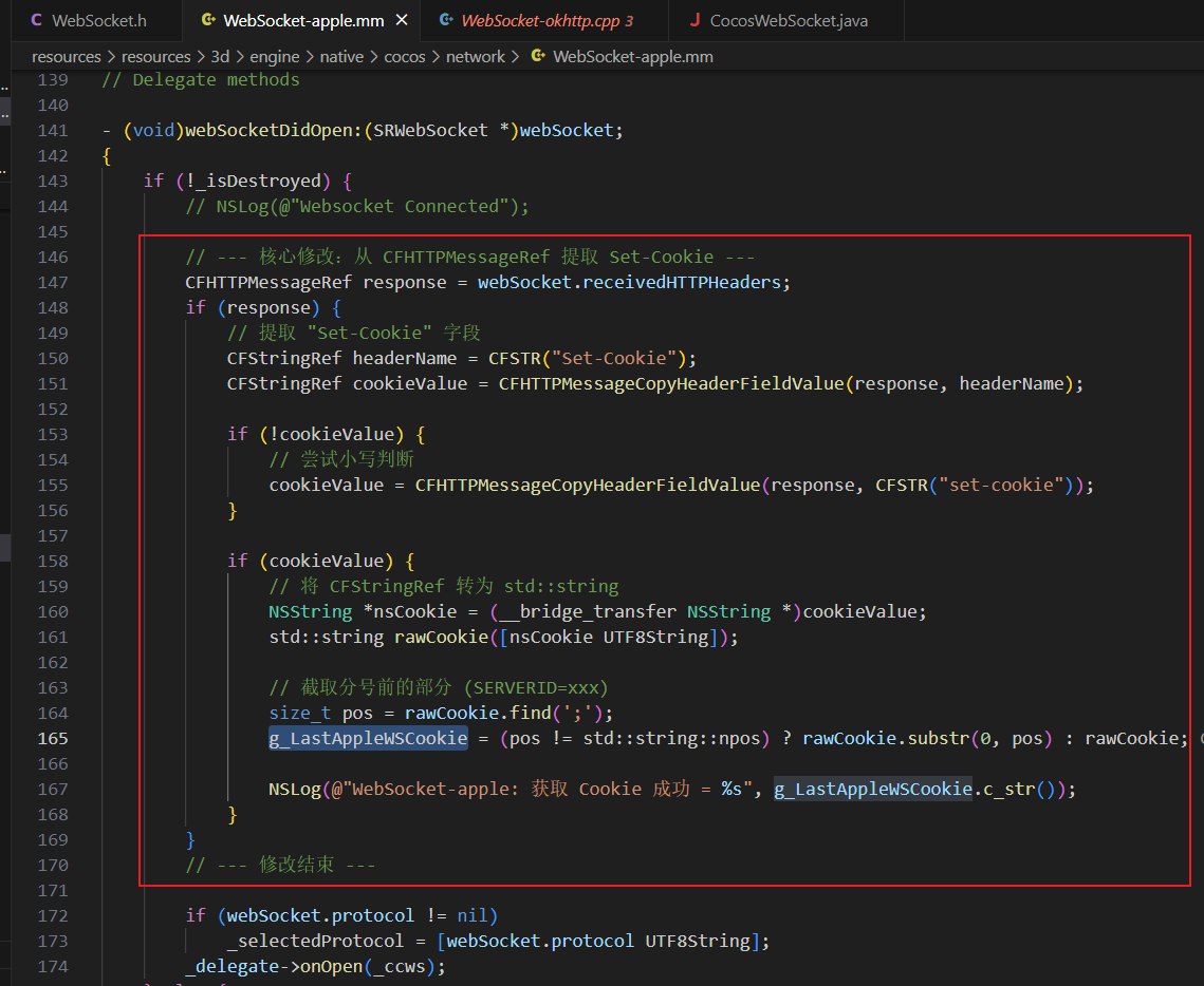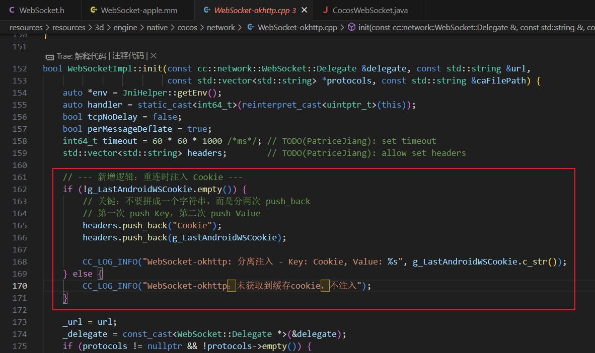 3.1、新增g_LastAndroidWSCookie保存cookie,如果项目内有多个长链接,可以使用map来存储