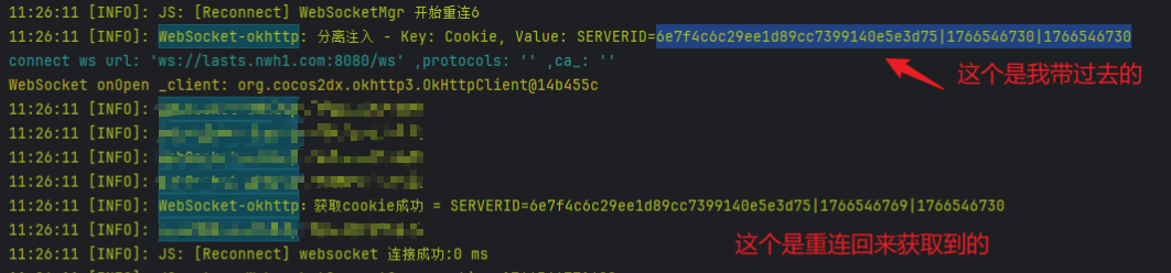 断线重连时,将cookie注入,重连成功时,可以看到返回的cookie,格式为:SERVERID=后端服务器的唯一 ID|最后访问时间戳|会话开始的时间戳; 只要 前缀(机器 ID)没变 ,就说明没有漂移到其他网关