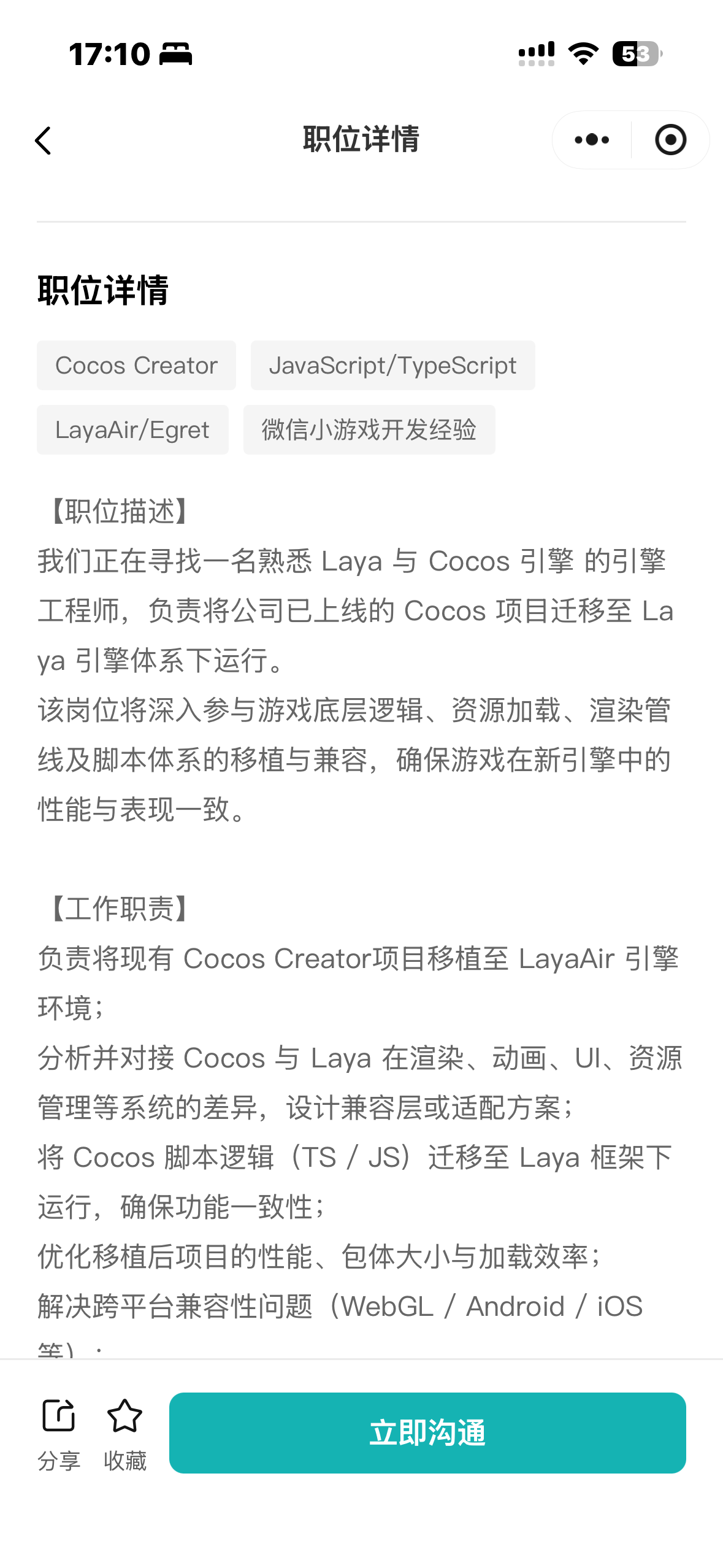 - 适合重度项目: 如果你要做画质要求很高的 3D 动作或 RPG 小游戏,Laya 是强有力的竞争者。