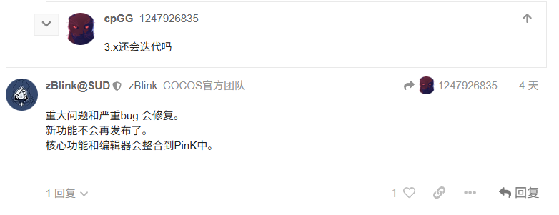 那么现在问题来了,当年cocos3.x把2.x功能全部移植了一遍,导致很多2.x没有的bug,3.x有。现在情况是,pink再次把3.x的功能全部移植一遍,你觉得这想不想是历史在重演。