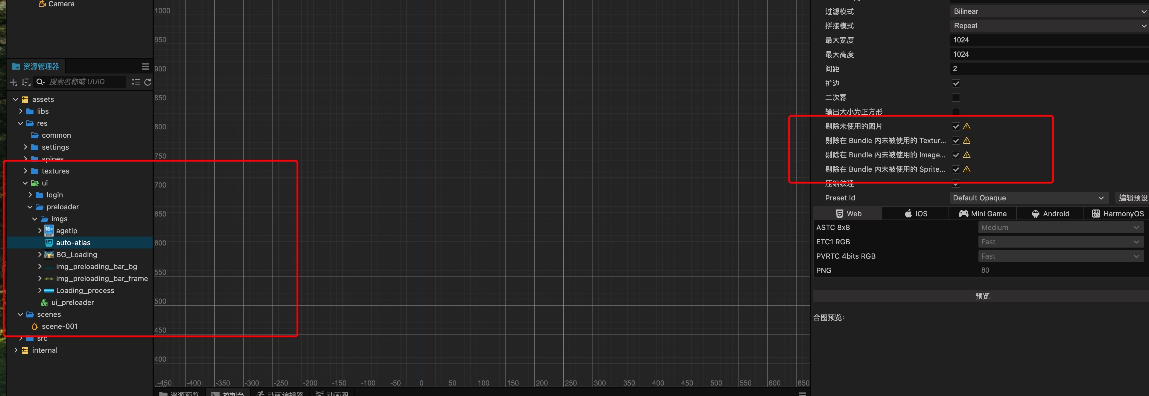 ui_preloader有用到imgs的图,imgs文件夹里有设置自动图集。