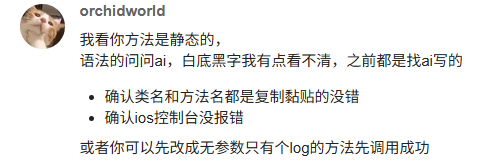 你的ios文件贴出来,看看咯。你这个方法是不是static的呢?