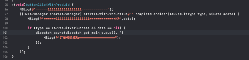 NSLog(@"==================[buttonCLickWithProduId] 执行=========================");
