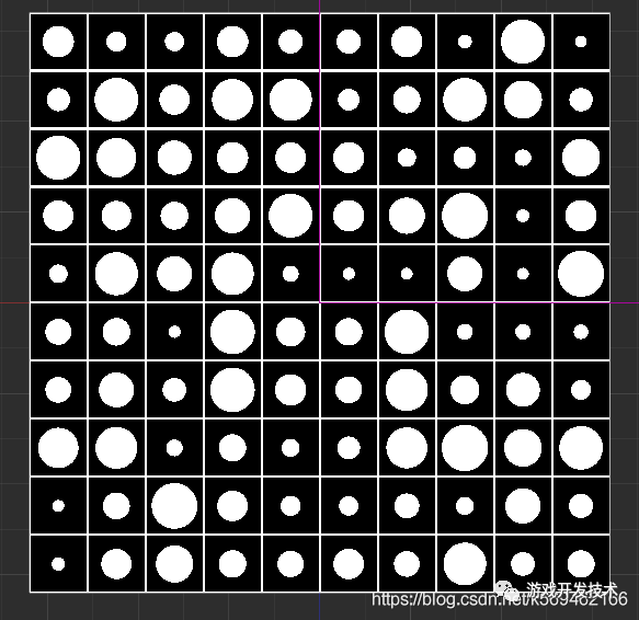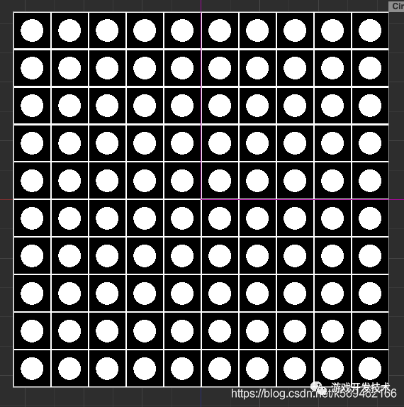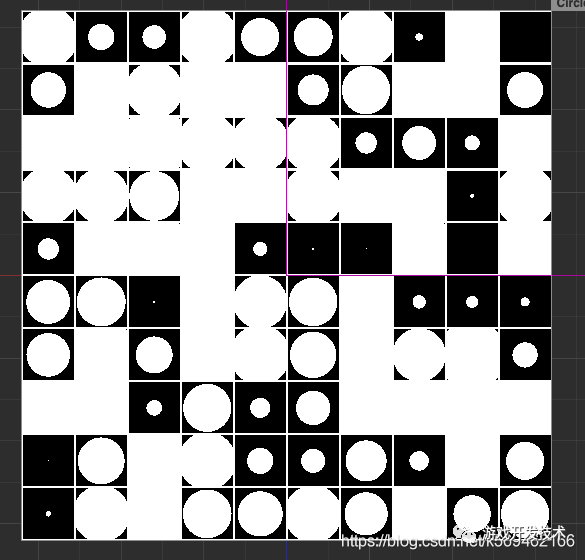 下面,就可以用 像素点计算出来的 分格后的 下表和在格内的坐标来对每个格子画圆看一下。