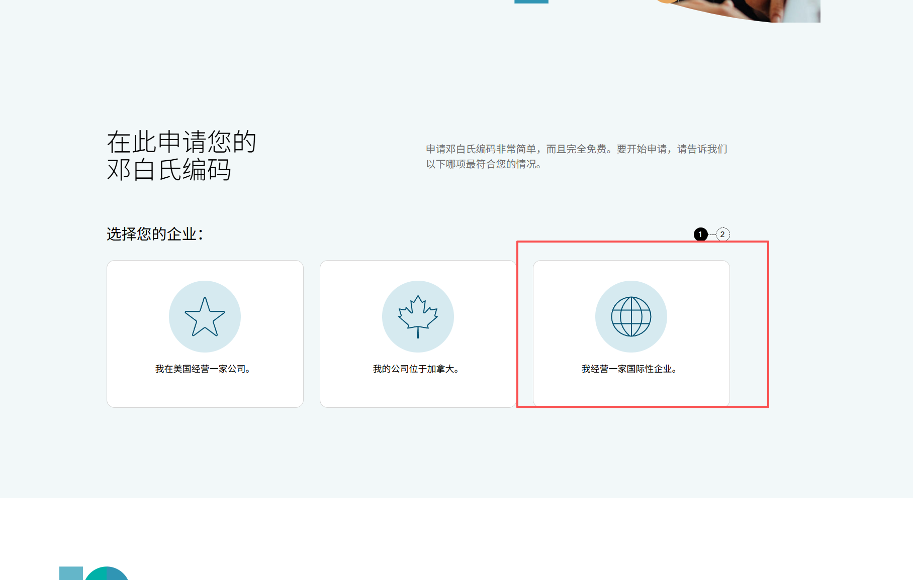 第二步:点击申请邓白氏编码(在线获取)