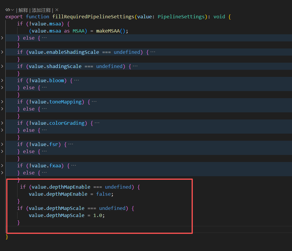 这里的settings是通过builtin-pipeline-settings.ts生成的配置文件“builtin-pipeline-types.ts”。我们后续也会将这两个参数通过builtin-pipeline-settings.ts暴漏在面板。
