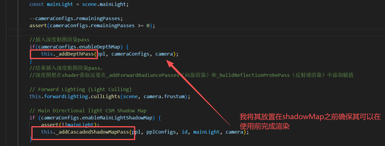 5. 改写渲染管线_将深度pass添加到主函数中。