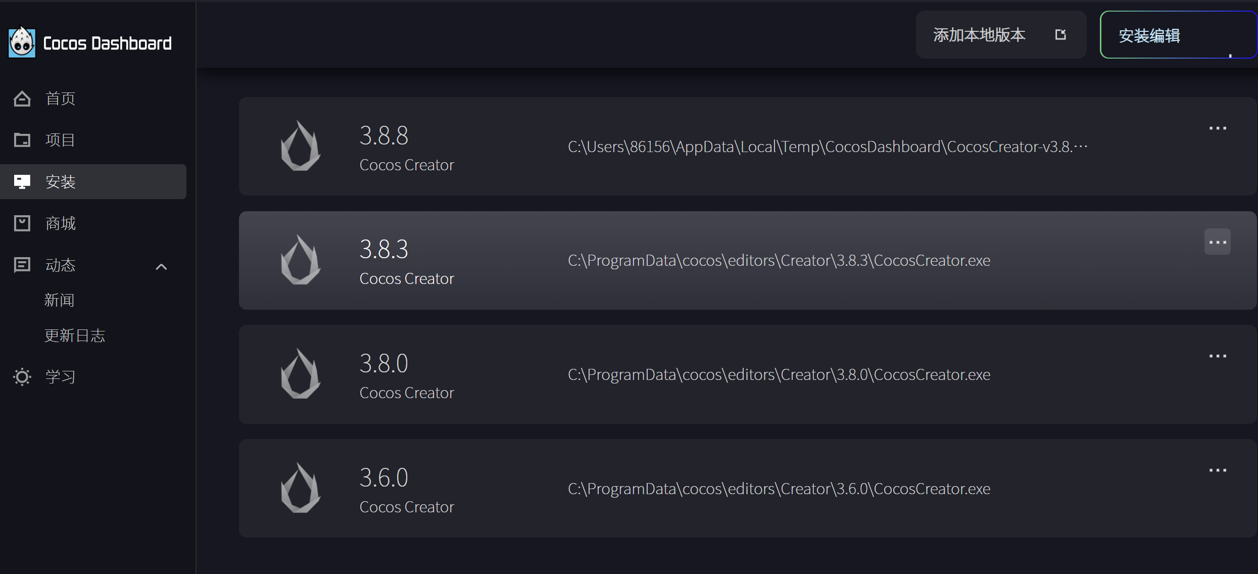 win11系统, 无论怎么安装Cocos Dashboard后,怎么添加新项目,都提示灰色。