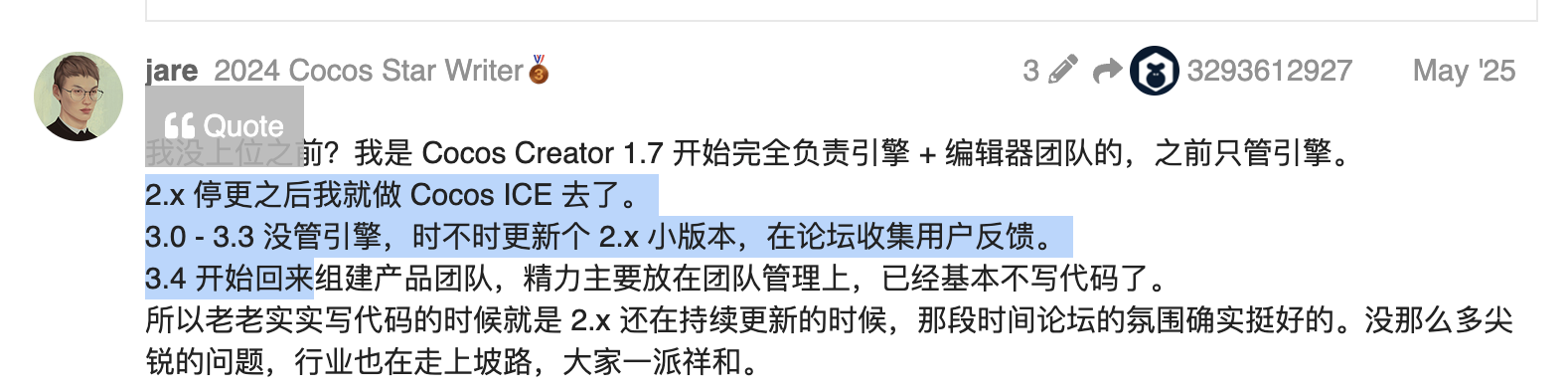 说实话jare帮我解决过很多bug。这点他很棒的但是主导产品不行。我就感觉3.x不如2.x。他写代码没问题为人也不错但是跨界做产品 还差很多意思。