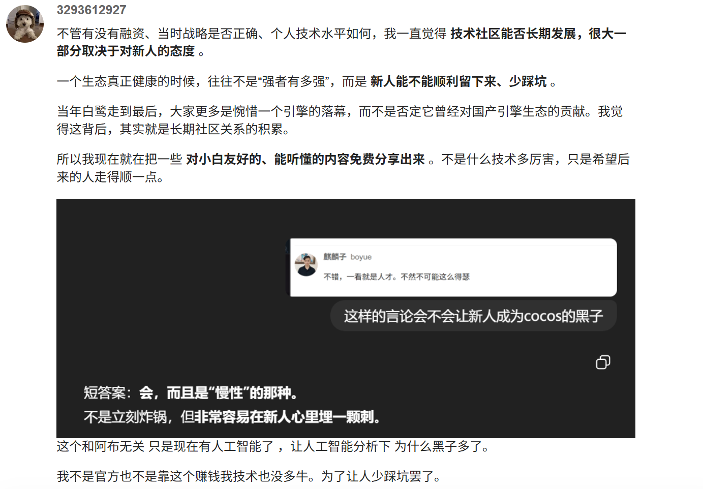 1 最后这个po不是指责他 而是说建议以后论坛的风气。他图形学能力不差