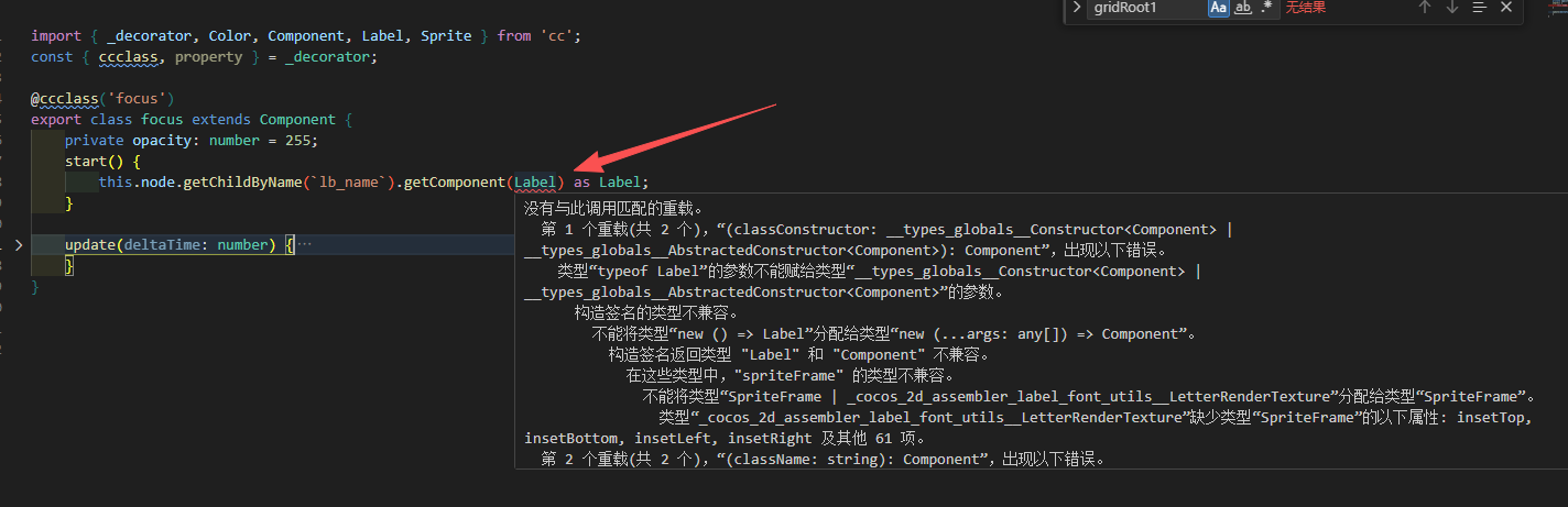 获取子节点的Label属性就会报这个错误,但是不影响运行,控制台也不会报错,试过删除Cocos重新安装还是没有解决。