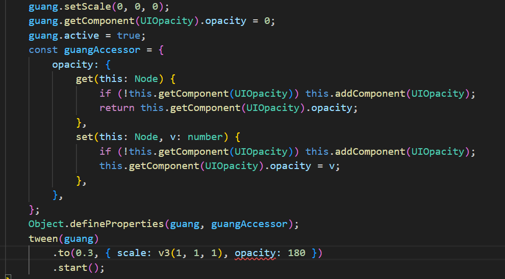 .to(0.5, { scale: v3(0.5, 0.5, 1), opacity: 255 } as any)