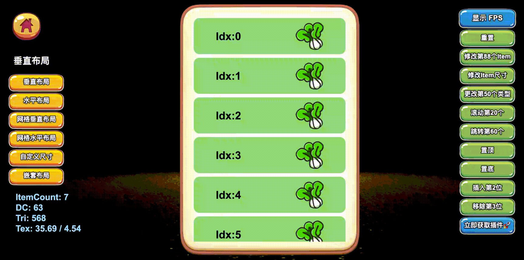 虚拟列表专为大型游戏和应用中展示大量数据列表而设计。通过动态节点管理与复用技术,相比原生 ScrollView 可大幅提升滚动性能和内存利用率。