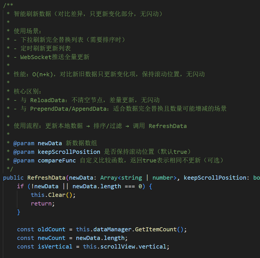 - 新增批量数据操作方法:PrependData(前置追加)、AppendData(后置追加)及智能刷新方法 RefreshData