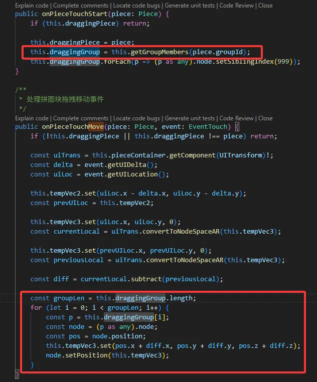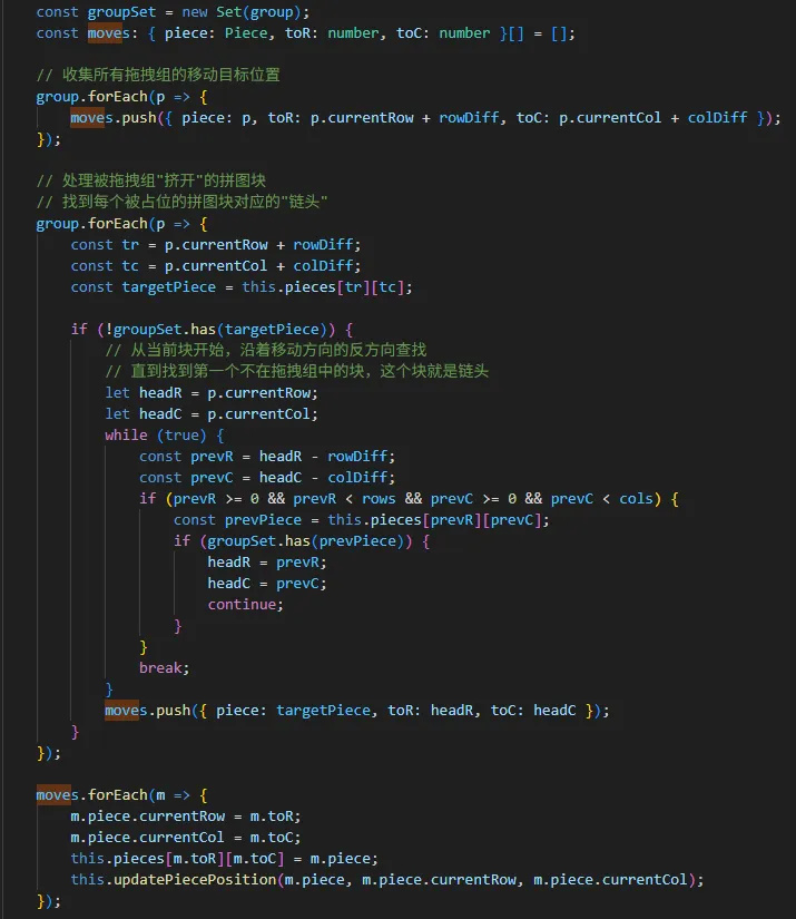移动的时候,根据组ID拿到所有的拼图块,移动的时候整体按照偏移移动即可。